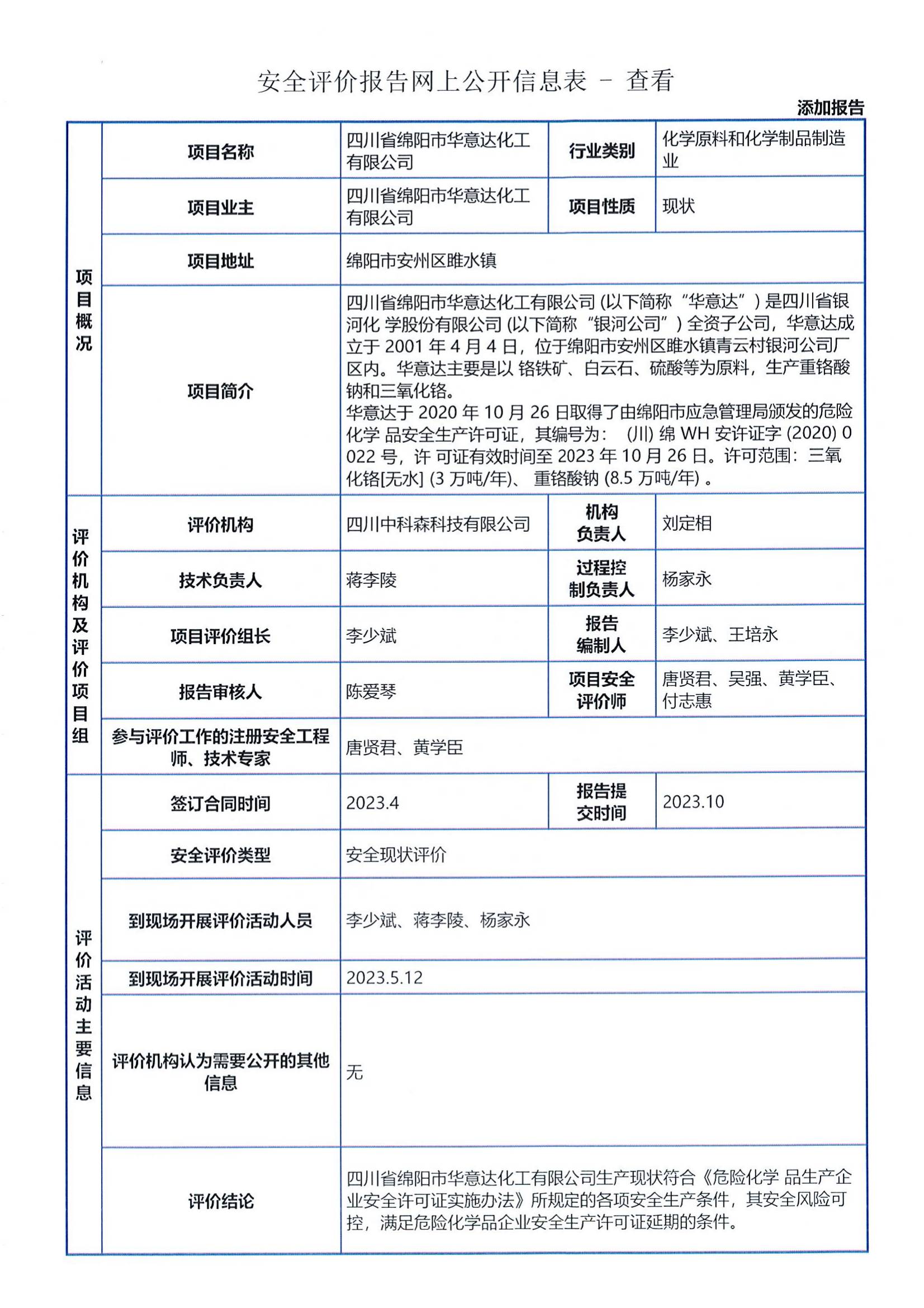 四川省绵阳市华意达化工有限公司委托我司进行安全现状评价,我司于2023年5月组织评价人员进场实地勘察和收集资料,本报告根据本项目的实际特点,分析评价其存在的危险、有害因素的种类和发展规律,定性定量评价危险有害程度,提出了安全对策措施及建议,作出安全评价结论。根据《安全评价通则》和《危险化学品生产企业安全评价导则(试行)》,结合《四川省危险化学品生产企业安全生产许可证实施细则》的相关要求,编制完成了《四川省绵阳市华意达化工有限公司安全现状评价报告》。